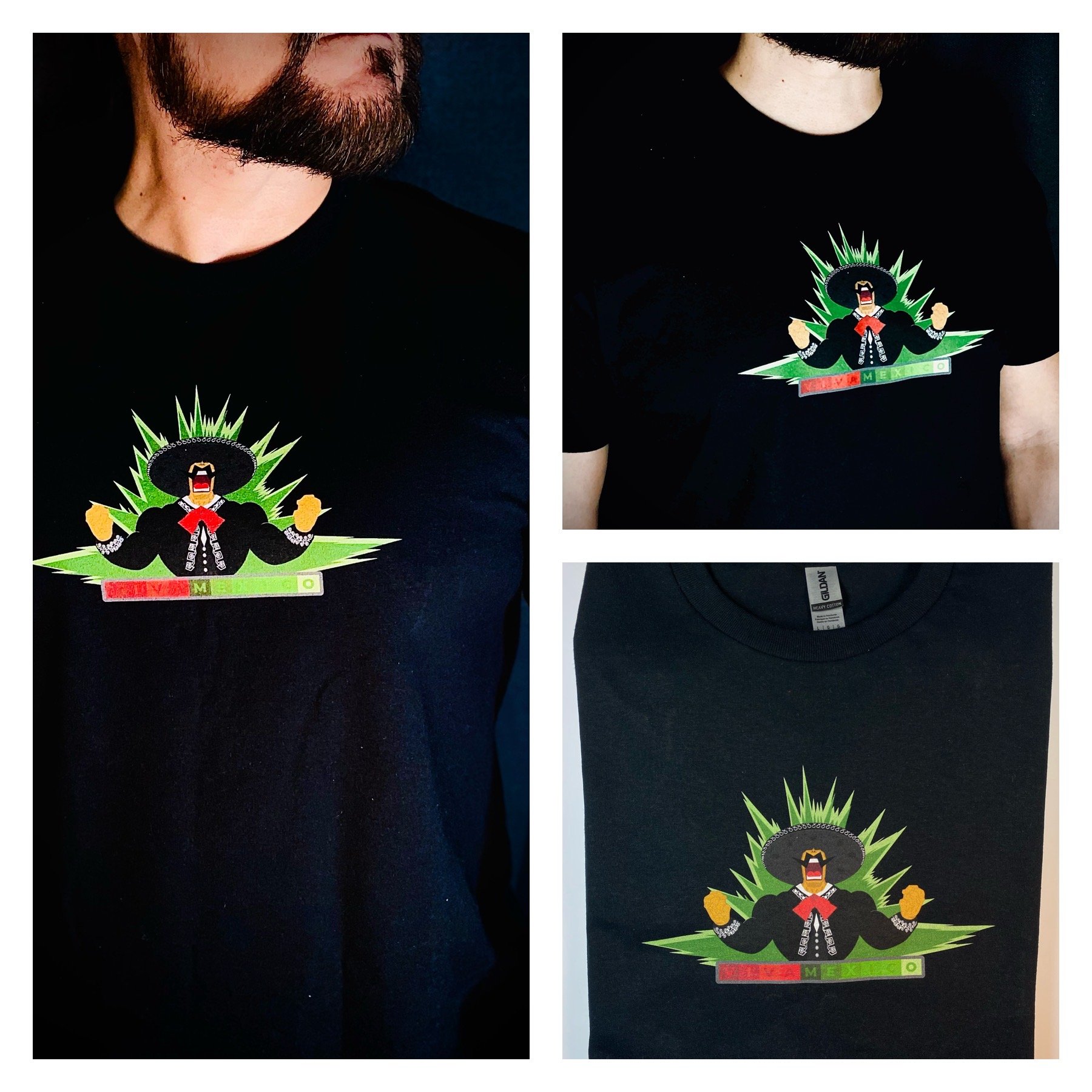 This t-shirt portrays a powerful mariachi man. "VIVA MEXICO" can be read at the bottom of the image. A needed garment to reflect the rising power of today's Mexican man.